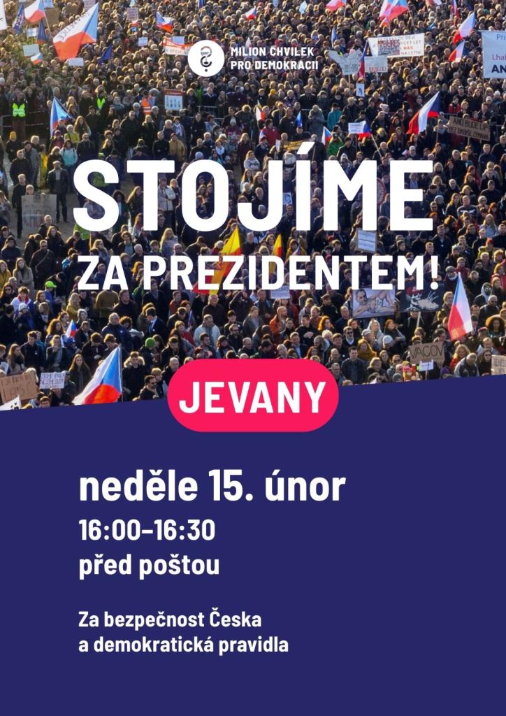 Sdružení Jevanských sousedů z.s. ve spolupráci s organizací Milion chvilek pro demokracii pořádá shromáždění, které se bude konat v neděli 15. února od 16 hodin v Jevanech u pošty.