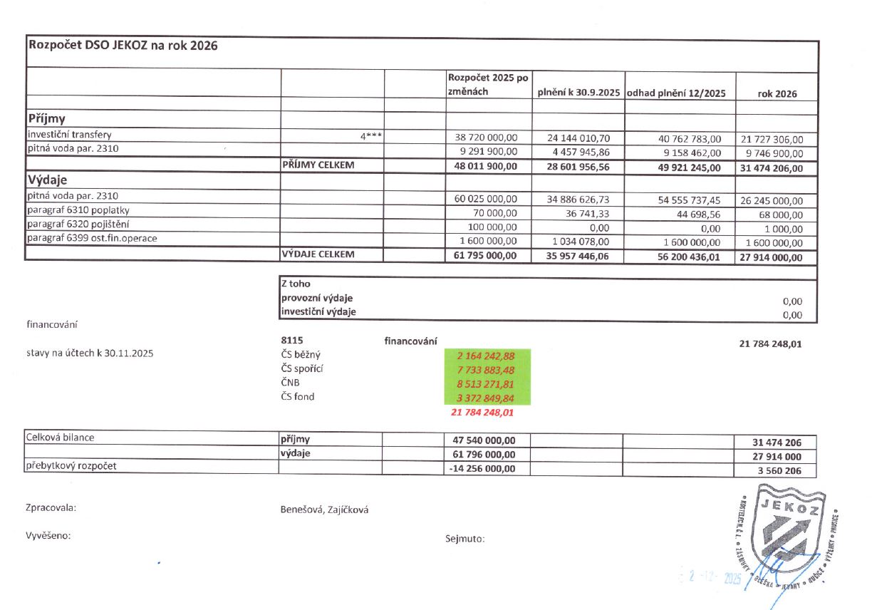 Rozpočet JEKOZ na rok 2026.JPG Typ: JPG obrázek, Velikost: 127.01 kB